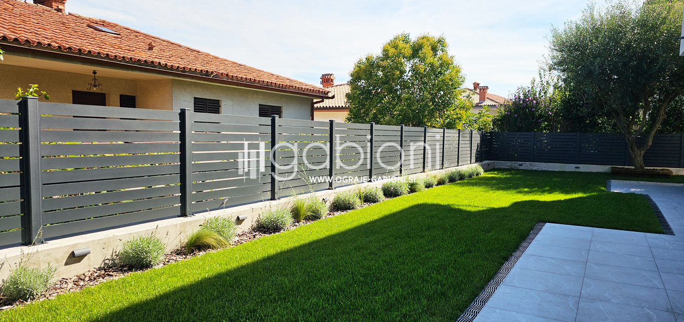 Stilsko dovršena lamelna ograja popolnoma ali delno prekriva poglede.