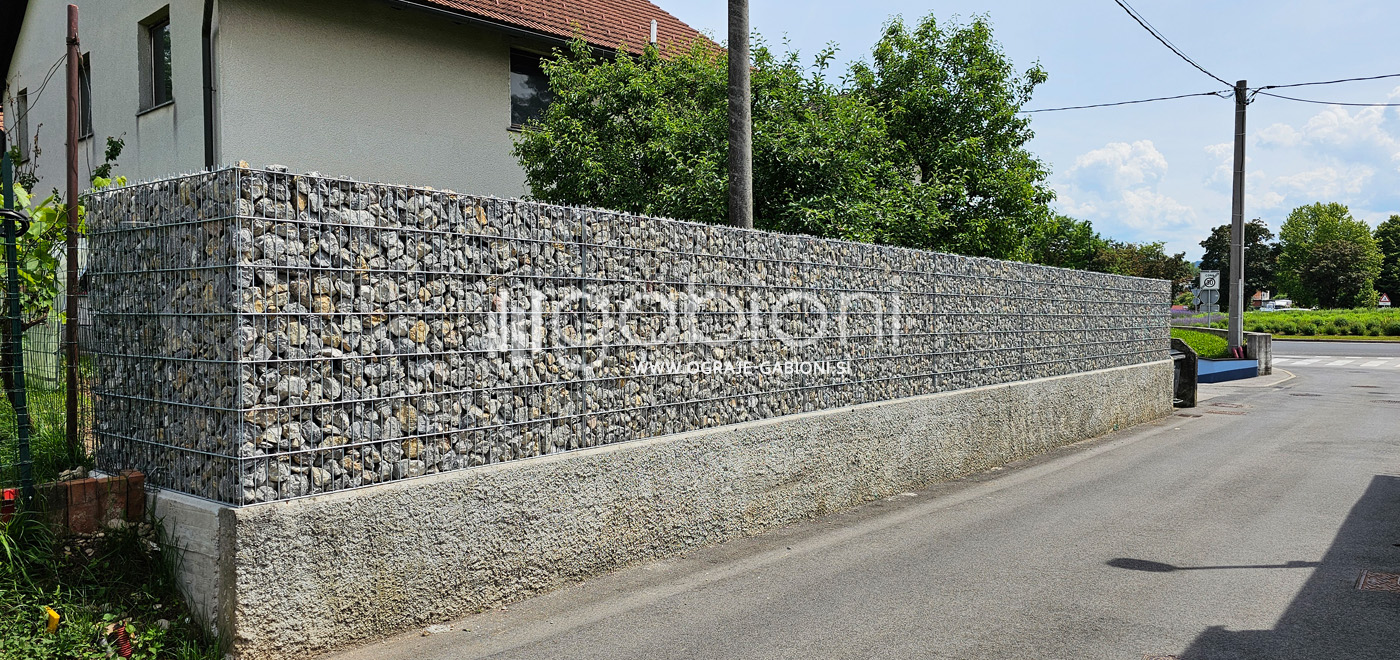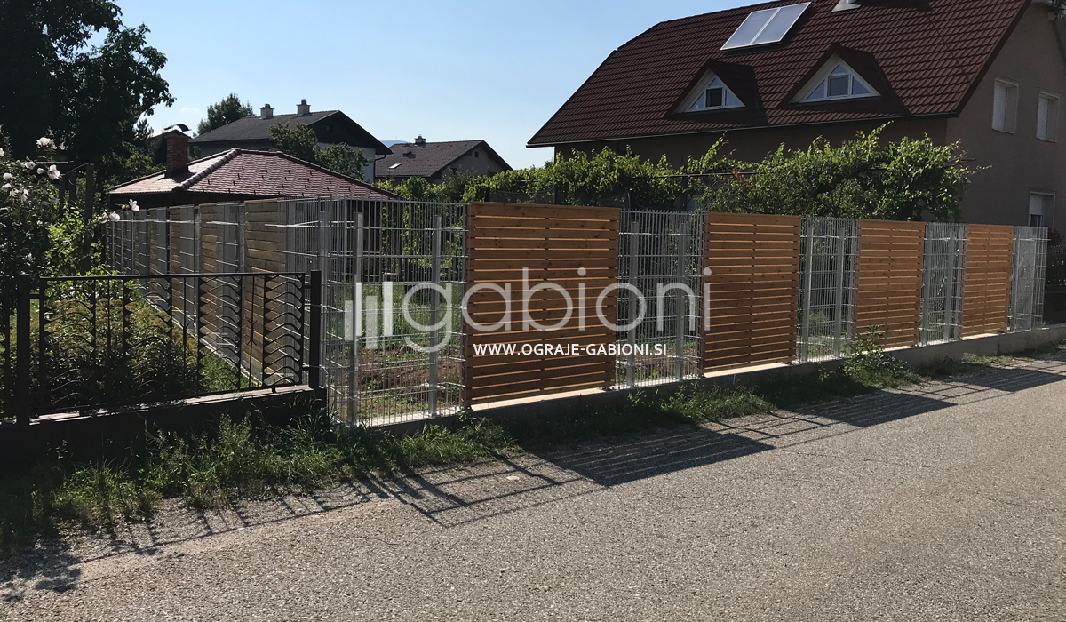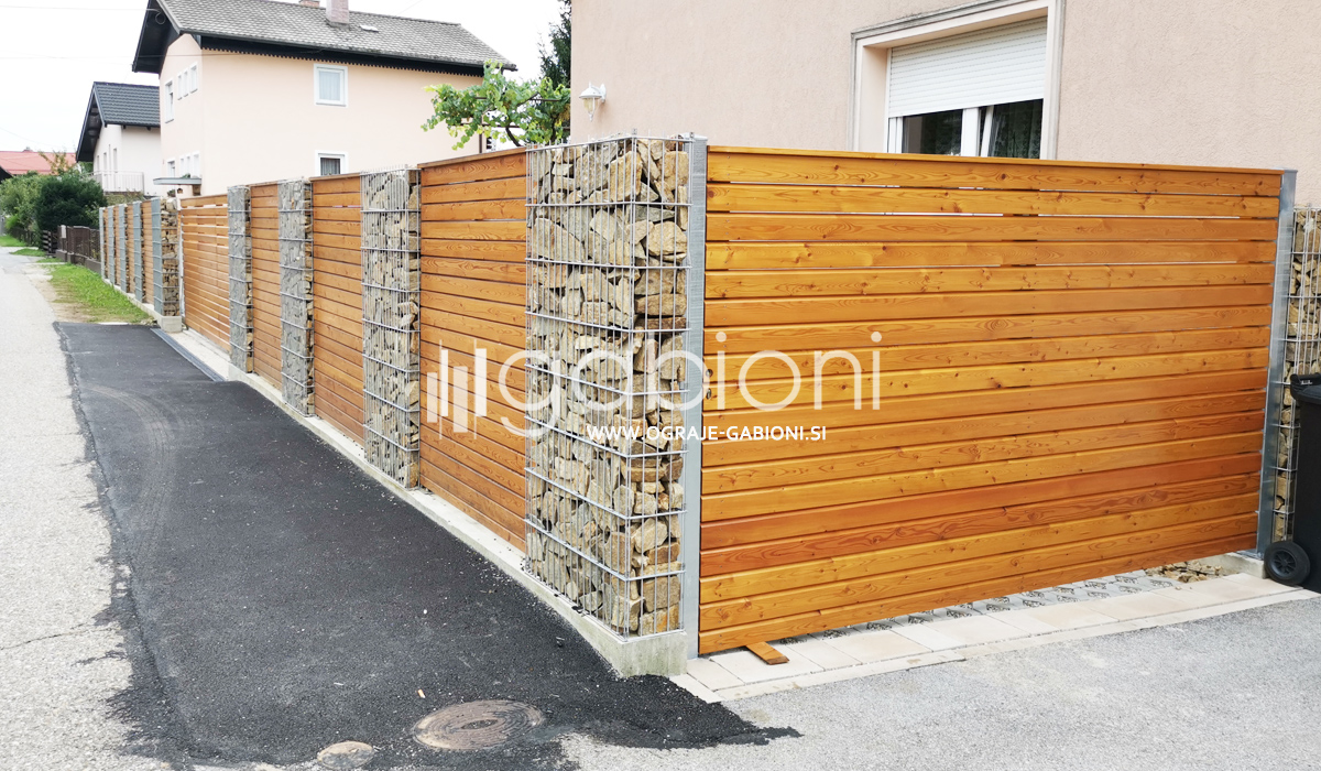 Standardne dimenzije panelov so 50x200 mm. Ograje gabioni lahko prilagajamo raznim oblikam in kotom. Kot edini na trgu nudimo gabioni ograje v loku. Prednosti gabioni ograj je močno in odlično zmanjševanje hrupa.